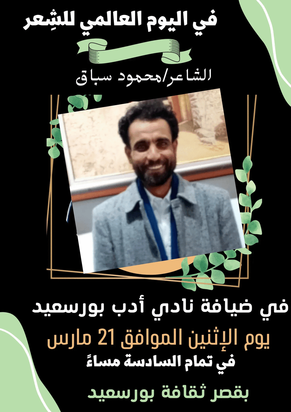 الشاعر محمود سباق ضيفًا على نادي أدب بورسعيد في اليوم العالمي للشعر الاثنين المقبل
