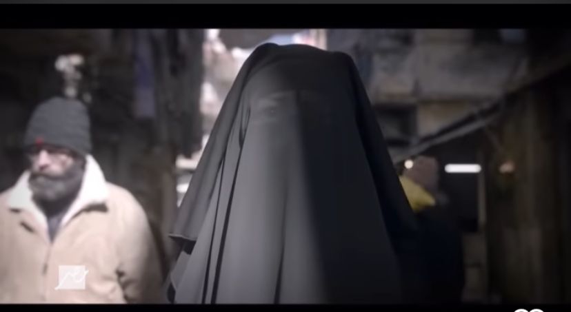 وظهرت الفنانة منة شلبي منقبة، وقالت في أحد المشاهد: الهروب مش معناه النجاة، بس الانتظار معناه الموت، وكما ظهرت لقطات من حياتها القديمة مع زوجها وابنتها، وكيف تحول زوجها –محمد حاتم- من مدير إحدى شركات الإعلانات إلى متطرف ينضم إلى تنظيم داعش.