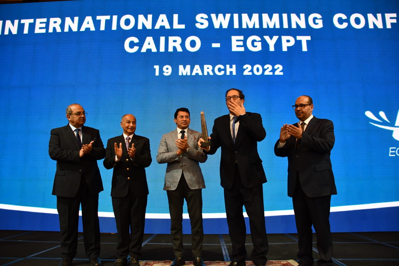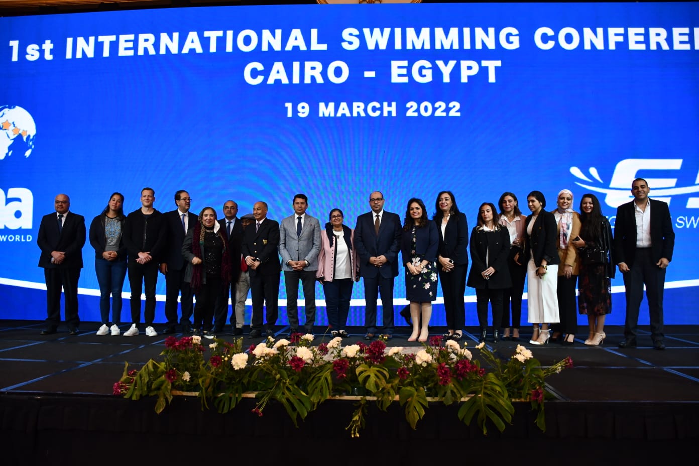 وزير الرياضة يشهد فعاليات المؤتمر الدولي الأول للسباحة │ صور