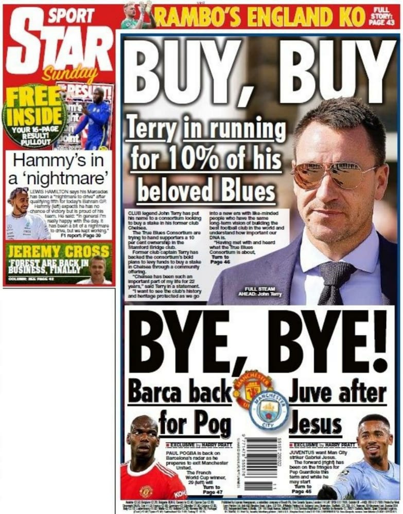 تصدر العنوان، وداعا، صحيفة ديلي ستار لعدد اليوم، وذلك مع تأكيد الصحيفة رحيل بول بوجبا عن مانشستر يونايتد في الصيف، وكذلك استهداف برشلونة له من جديد.
