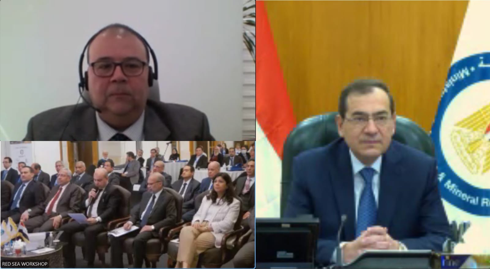 افتتح المهندس طارق الملا، وزير البترول والثروة المعدنية، عبر تقنية الفيديوكونفرانس؛ النسخة الثانية من ورشة عمل مستقبل استكشاف البترول والغاز في البحر الأحمر، والتي نظمتها شركة جنوب الوادي المصرية القابضة للبترول بمدينة الغردقة، بالتعاون مع جمعية جيوفيزيائي الاستكشاف SEG، بحضور الدكتور نائل درويش، رئيس شركة جنوب الوادي وقيادات الشركات البترولية العالمية العاملة بمنطقة البحر الأحمر، 115 خبيرا من 36 شركة عالمية من 7 دول وأساتذة الجامعات والمعاهد البحثية.