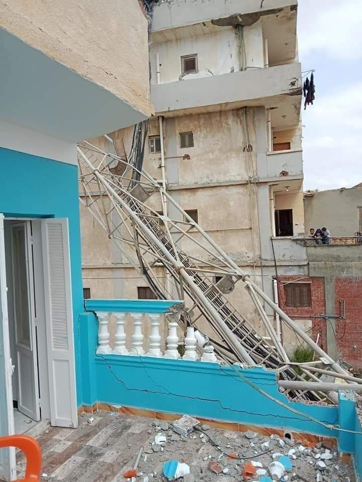 وأكد الأهالي أنهم فوجئوا بسقوط برج اتصالات لإحدى شبكات المحمول بسبب التقلبات الجوية، التي تشهدها المحافظة وسرعة الرياح منذ صباح اليوم دون أي إصابات بينما تضررت البناية السكنية جراء سقوط البرج.