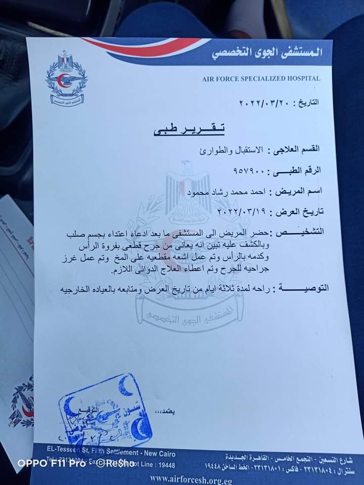 وأكد الطالبة أسماء ممدوح، أنه تم إصابة أحد الطلاب ويدعي أحمد رشاد بسبب ضربه بحديد، قائلة: والطالب وقع وساح في دمه.