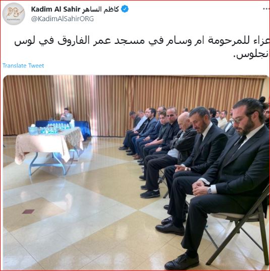 وشارك كاظم الساهر متابعيه، صورة له أثناء تواجده بالعزاء، عبر حسابه الشخصي بموقع توتير، وعلق: عزاء للمرحومة أم وسام في مسجد عمر الفاروق في لوس أنجلوس.