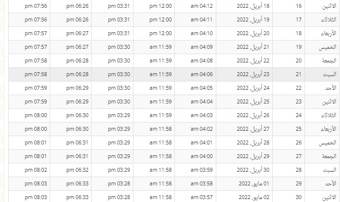 يوم الأحد 1 مايو الموافق 30 رمضان 1443 هجريا