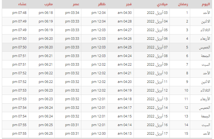 إمساكية شهر رمضان 2022
