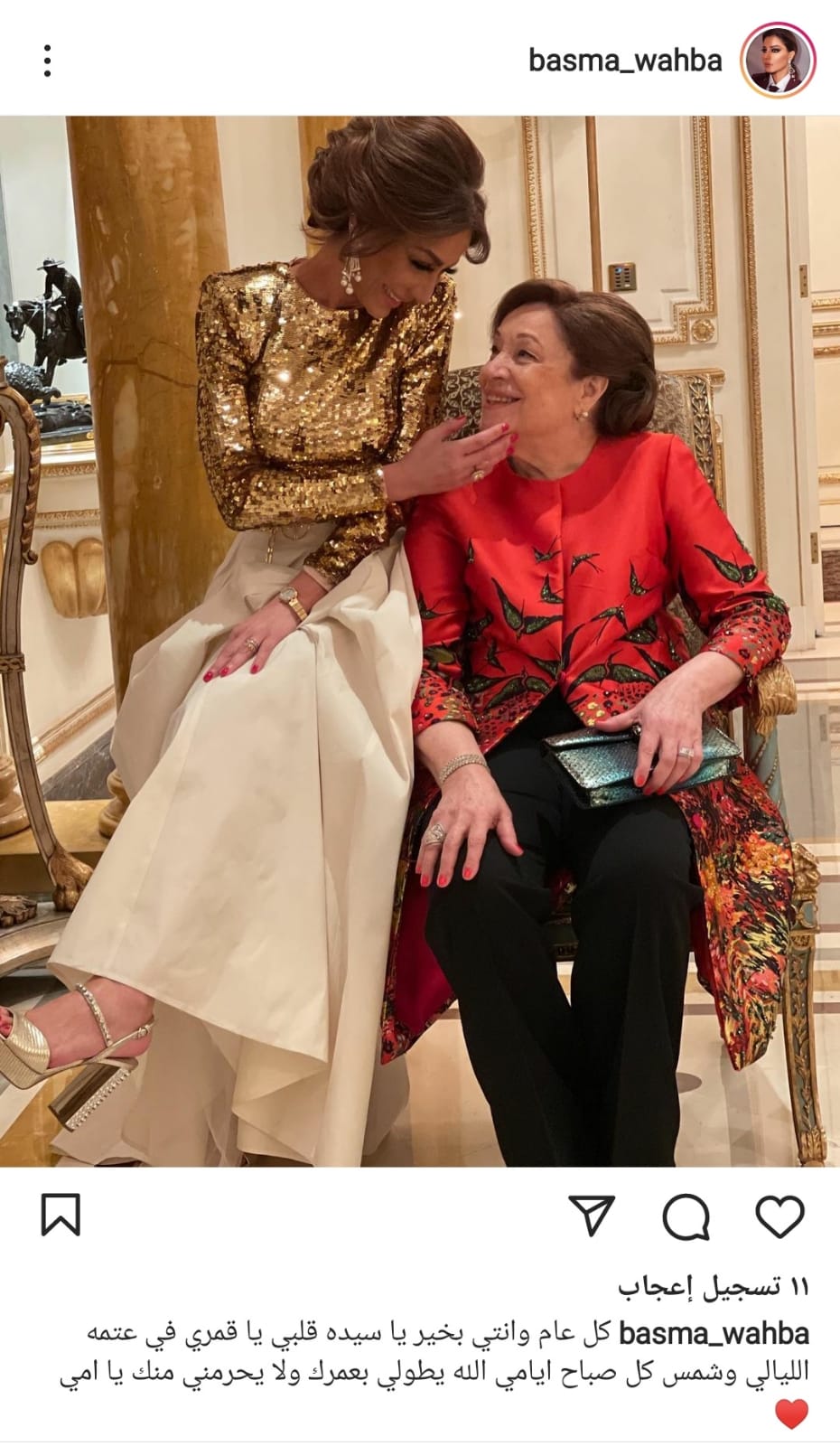 ونشرت بسمة وهبة، الصورة عبر حسابها الشخصي بموقع إنستجرام، وعلق عليها قائلة: كل عام وإنتِ بخير ياسيدة قلبي، ياقمري في عتمة الليالي، وشمس كل صباح أيامي، الله يطولي بعمرك ولا يحرمني منك يا أمي.