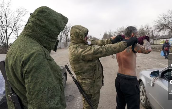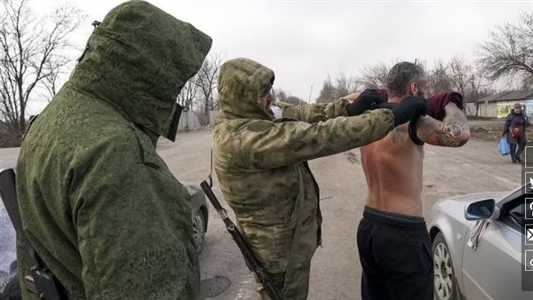 ورصدت صحيفة ديلي ميل البريطانية؛ مقاطع فيديو للعساكر والضباط الروس، وهم يفتشون الأوكران، ويتفقدون «التاتو» الخاص بكل شخص، لمعرفة هل يحمل علامة النازية أم لا؟.