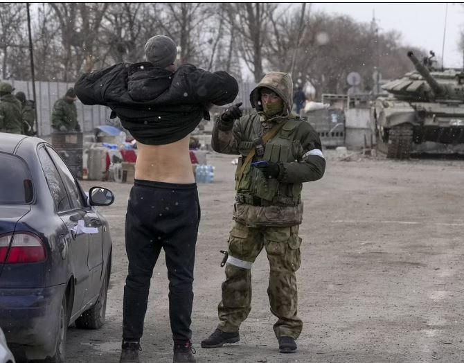 شن الجيش الروسي؛ حملات تفتيش للمدنيين الأوكران؛ الراغبين في مغادرة بلادهم، بعد اندلاع الحرب، والذهاب إلى مناطق أكثر أمنًا، من خلال الممرات الإنسانية في مدينة ماريوبل.