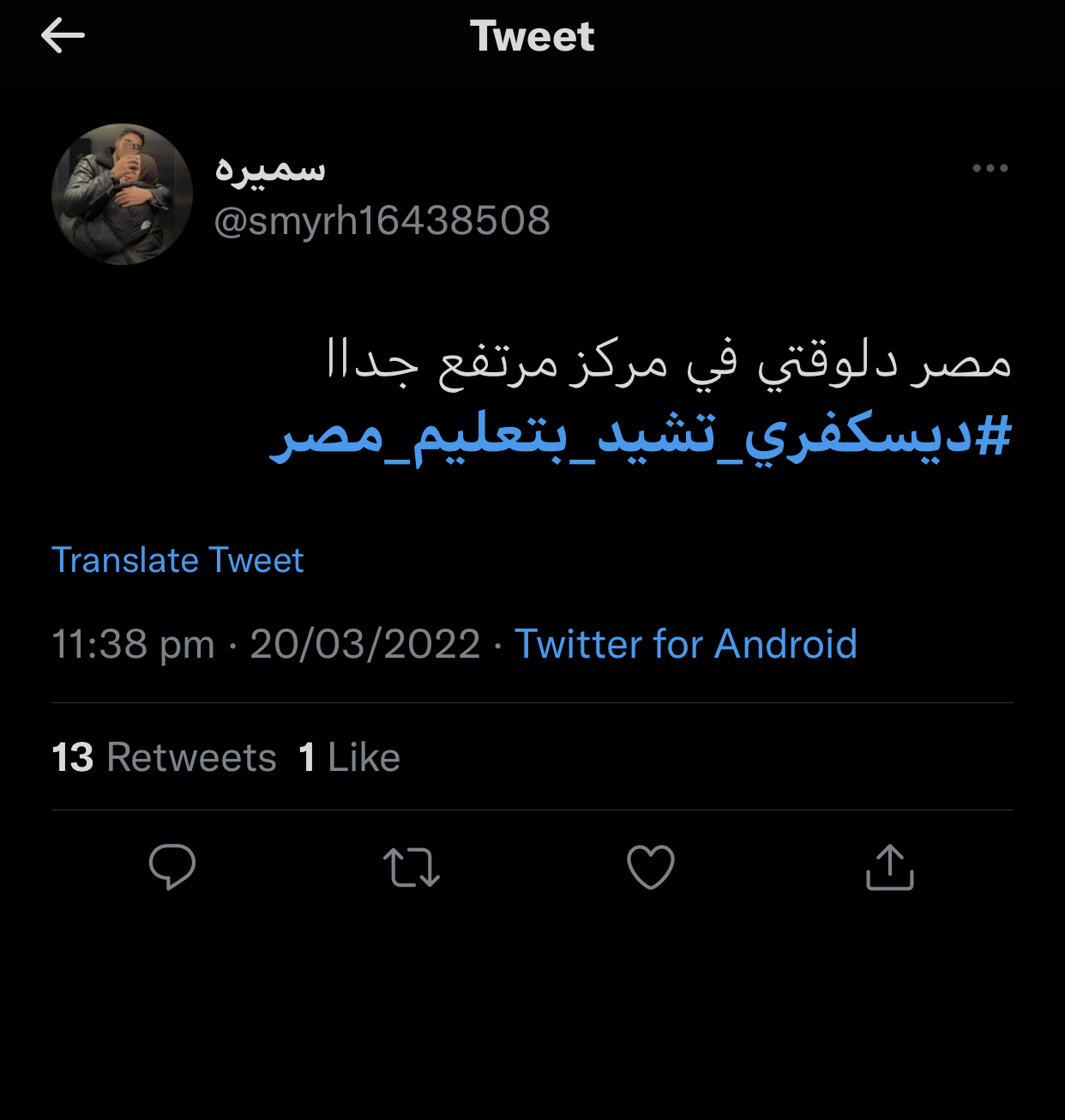 وكتبت خلود خالد، عبر حسابها عبر تويتر: لما المؤسسات الدولية الكبيرة اللي زي ديسكفيري؛ تشيد بتجربة مصر في التعليم، وفي إنتاج بنك المعرفة.. لازم تعرف وتتأكد إننا ماشيين في الطريق الصح، مهما حاولوا يشككوا أو يهاجموا.