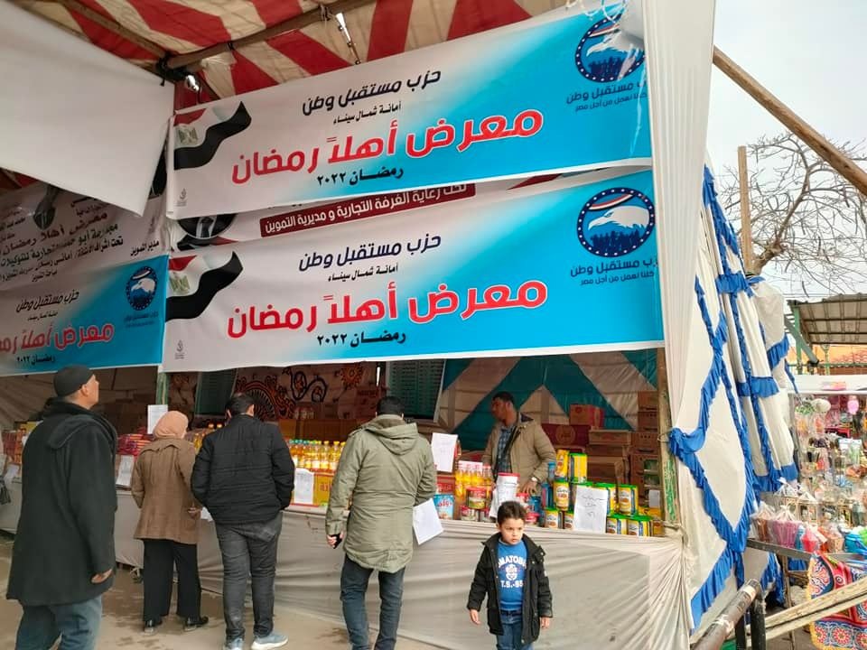 وفي محافظة شمال سيناء، أقامت أمانة الحزب بالمحافظة، معرض أهلًا رمضان لبيع السلع الضرورية والمواد الغذائية بأسعار مخفضة لمواجهة غلاء الأسعار واستعدادا لشهر رمضان المبارك، وذلك خلال مشاركة الأمانة في معرض الغرفة التجارية بالمحافظة، والذي افتتحه المحافظ، والمعرض يشمل كل مستلزمات شهر رمضان المبارك بالإضافة للخضروات والمنتجات الغذائية واللحوم والدواجن، وشهد المعرض إقبال كبير في اليوم الأول، وهذا هو الهدف الأساسي الذي يسعى إليه الحزب لخدمة مستحقي الدعم من أهالي شمال سيناء.