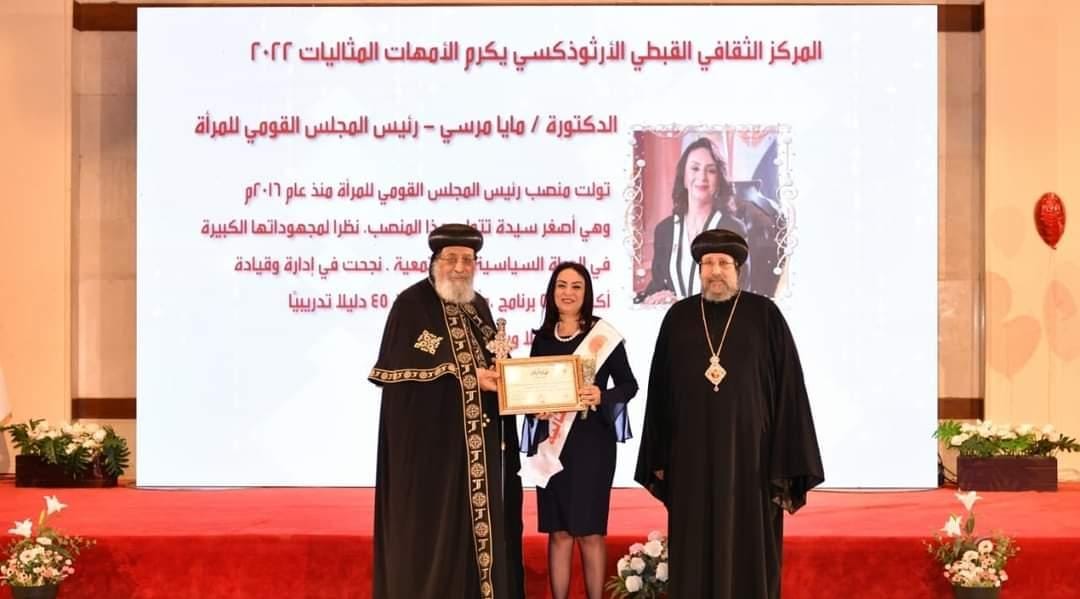 وفي ختام الحفل تم تكريم عدد من الأمهات المثاليات، ممن لهن قصص كفاح مع أسرهن في طريق النجاح والتميز، أو ممن قدمن خدمات كنسية واجتماعية متميزة، وكذلك سيدات نجحن وتميزن في مجالات عدة، من بينهن، الدكتورة ياسمين فؤاد وزيرة البيئة، والدكتورة مايا مرسي، والدكتورة هالة صلاح الدين عميد كلية الطب بالقصر العيني.