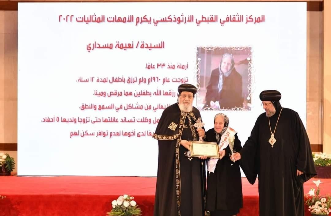 وبنهاية كلمة قداسة البابا قام برفقه الأنبا إرميا بتكريم الأمهات المثاليات وهن: