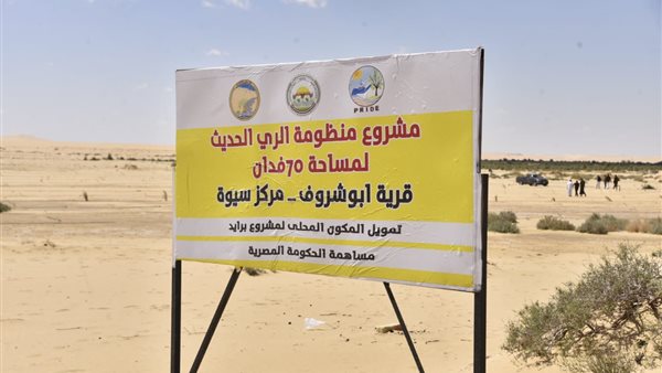 وأكد المحافظ، أن المشروع منفذ من خلال مركز التنمية المستدامة لموارد مطروح بمساهمة الحكومة المصرية من المكون المحلي، لمشروع تعزيز القدرة على المؤايمة في البيئات الصحراوية برايد على المساحة المستهدفة، من خلال مشروع تعزيز القدرة على الموائمة في البيئات الصحراوية برايد؛ تم زراعتها بشتلات الزيتون، وتوزيعها على شباب المزارعين بواحة سيوة، دعمًا من الحكومة المصرية والممولة من مشروع برايد، والتي تعمل بمنظومة الري الحديث، في إطار اهتمامات الدولة بتطوير نظم الري.