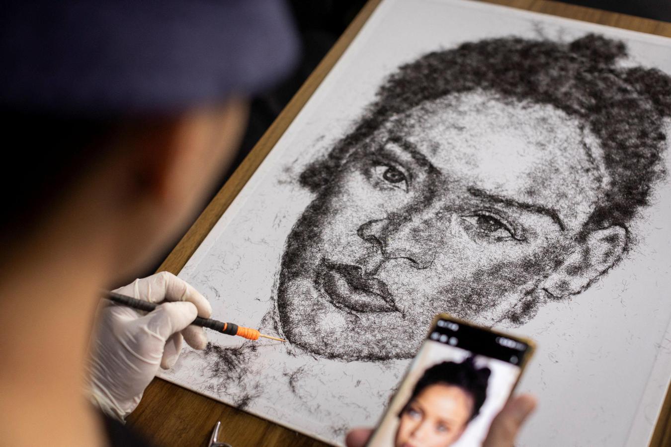 لعدم امتلاكه أدوات فنية.. جارسيا بحار فلبيني يتفنن في الرسم بشعره │ صور