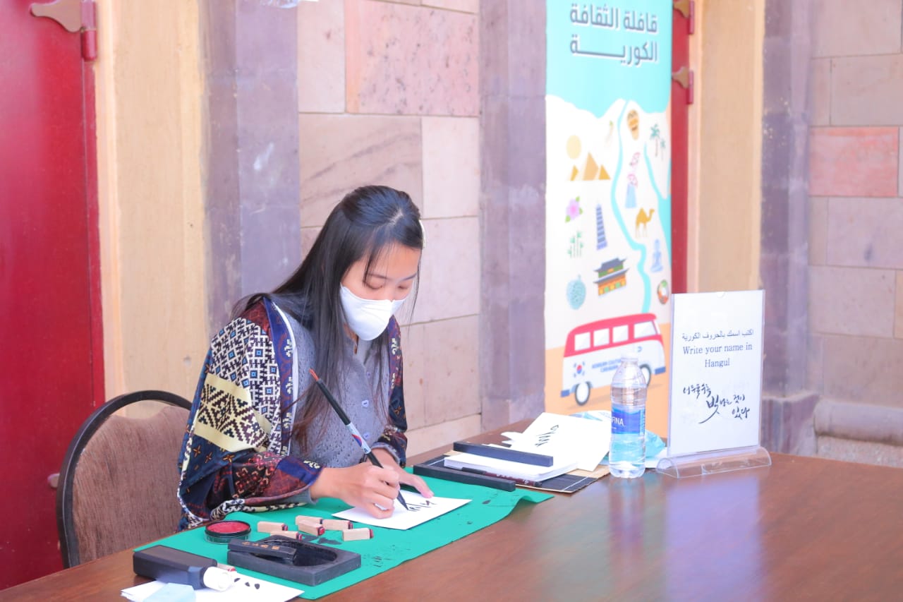 وقدمت القافلة الثقافية نموذجا مصغرا لكافة الأنشطة الثقافية التي يقدمها المركز الثقافي الكوري بمقره بالدقي، وتضمنت عرض لفيلم الغابة الصغيرة، والذي يتناول الحياة العائلية في كوريا، ومحاضرة تعليمية للغة الكورية من خلال أغاني الكي بوب، وتجربة الزي الكوري التقليدي هانبوك، وفن الخط الكوري "سوييه"، وفن طي الورق، كما قدمت الدكتورة سارة ماجد أستاذة اللغة الكورية بجامعة عين شمس، محاضرة ثرية حول الحياة الجامعية في كوريا وكيفية التقديم للمنح الدراسية في مختلف الجامعات الكورية، كما تضمنت القافلة ركن خاص لتقديم معلومات متعلقة بدراسة اللغة الكورية.