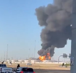 تصاعدت أعمدة الدخان في منشأة نفطية تابعة لشركة أرامكو بمدينة جدة السعودية، تزامنًا مع هجوم لمليشيات الحوثيين باستخدام صواريخ وطائرات مسيرة على عدة أهداف بالمملكة العربية السعودية.