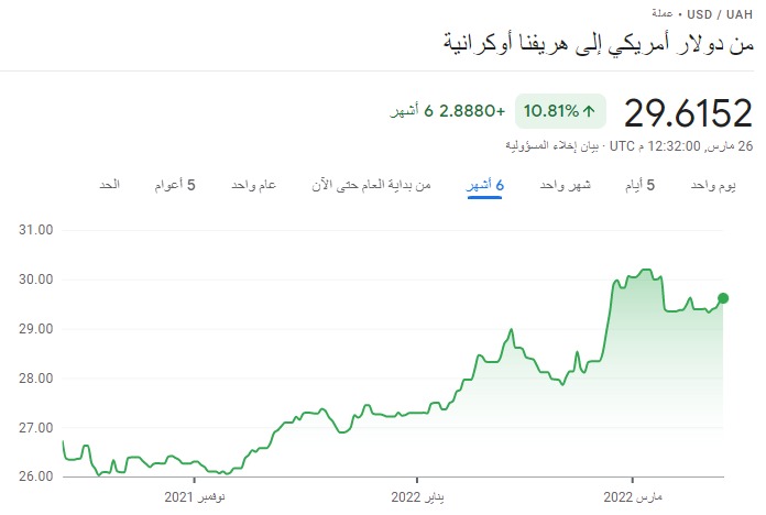 فرغم الفوضى التي أحدثتها روسيا على الأراضي الأوكرانية، وشبه توقف الحياة في أوكرانيا ونزوح العديد من المواطنين الأوكرانيين، إلا أن قيمة الدولار انخفضت مقابل الهريفنيا الأوكرانية بنسبة 0.97%، حيث وفقا لموقع google finance فإن الدولار اليوم يسجل 29.61 هريفنيا أوكرانية مقابل 29.90 يوم بدء شن الهجوم على أوكرانيا.