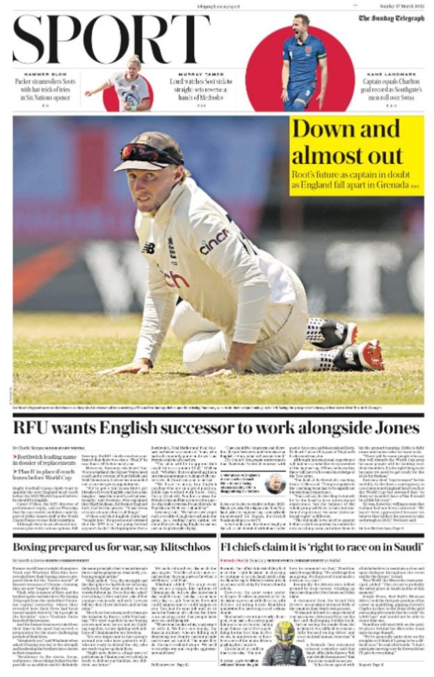 قالت تيليجراف في غلافها، إن الكابتن هاري كين تألق بشكل واضح رفقة الأسود الثلاثة، وعادل رقم بوبي تشارلتون ويقترب من مطاردة روني، على قمة الهدافين التاريخيين للمنتخب.