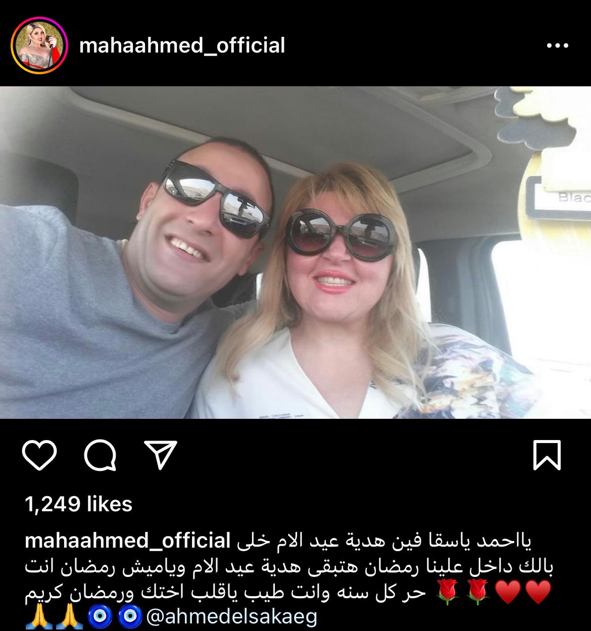 ونشرت مها أحمد الصورة، عبر حسابها الشخصي بموقع تبادل الصور والفيديوهات القصيرة انستجرام، وعلقت عليها قائلة: يا أحمد يا سقا فين هدية عيد الأم، خلي بالك داخل علينا رمضان، هتبقى هدية عيد أم وياميش رمضان، أنت حر كل سنة وأنت طيب يا قلب أختك ورمضان كريم.