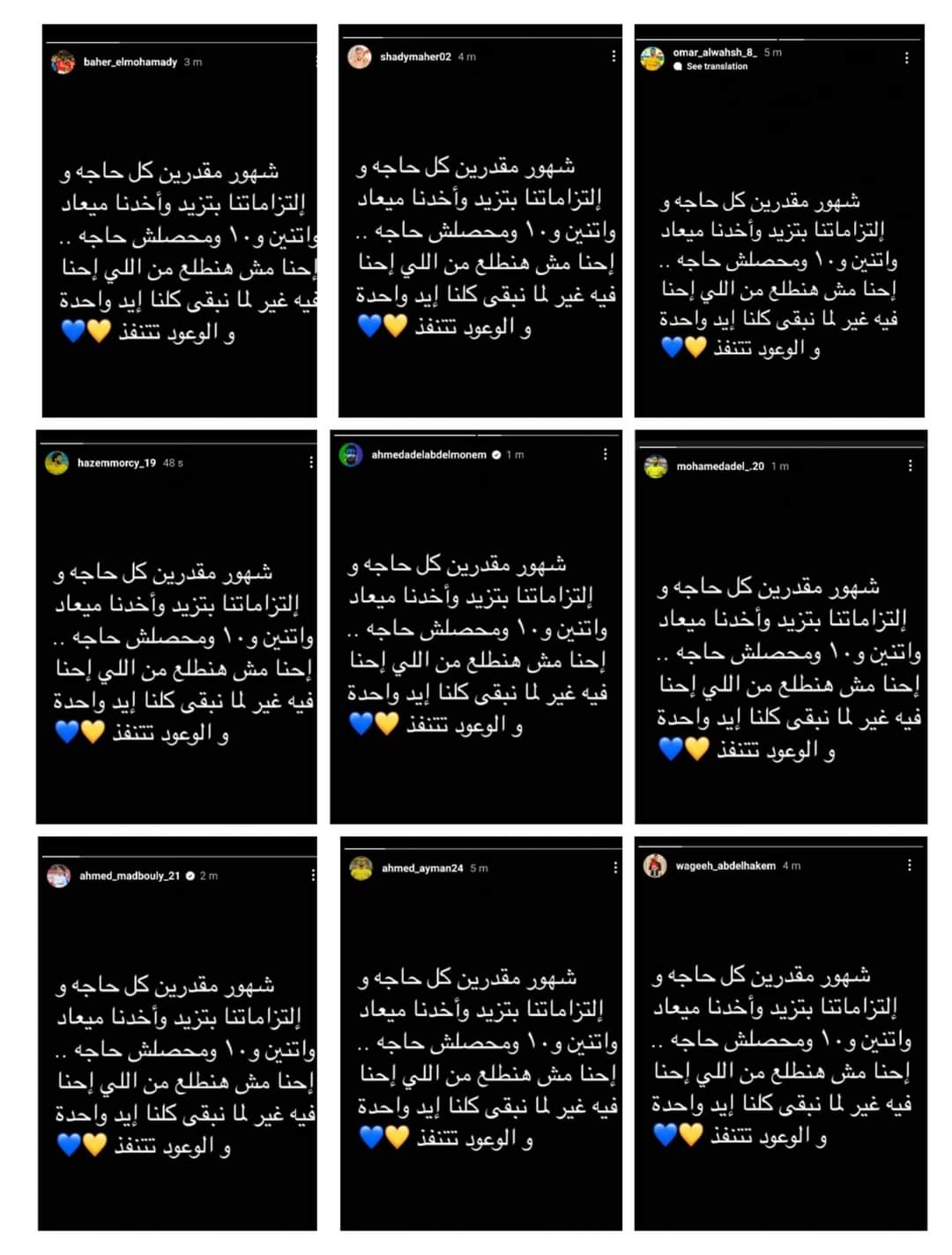 وجاء نص البيان الذي نشره جميع اللاعبين عبر حساباتهم، على النحو التالي:-