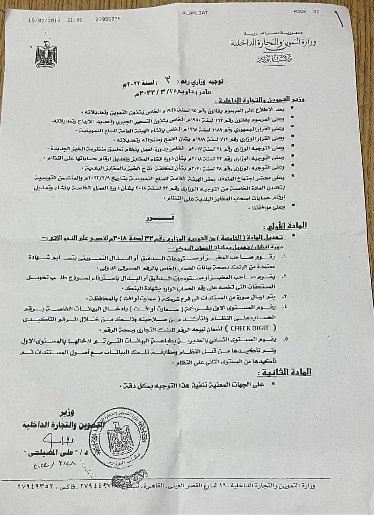 أولًا: أن يقوم صاحب المخبز أو البدال التمويني أو مستودعات الدقيق، بتسليم شهادة من البنك بصحة بيانات الحساب الخاص بالرقم المصري الدولي.