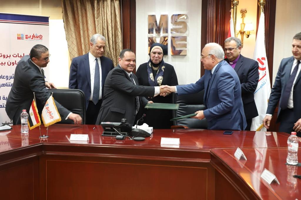 ووقع من طرف الهيئة الإنجيلية، الأستاذ ممتاز بشاي، نائب رئيس الهيئة الإنجيلية، والدكتور رأفت عباس، رئيس القطاع المركزي للخدمات غير المالية بجهاز تنمية المشروعات، وبحضور لفيف من مسؤولي جهاز تنمية المشروعات والهيئة.