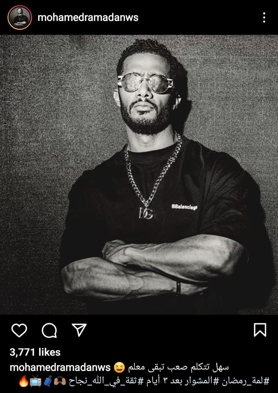 وشّوق محمد رمضان جمهوره لـ مسلسل المشوار، كاشفا أنه سيعرض بعد 3 أيام، إذ كتب عبر حسابه بموقع انستجرام: