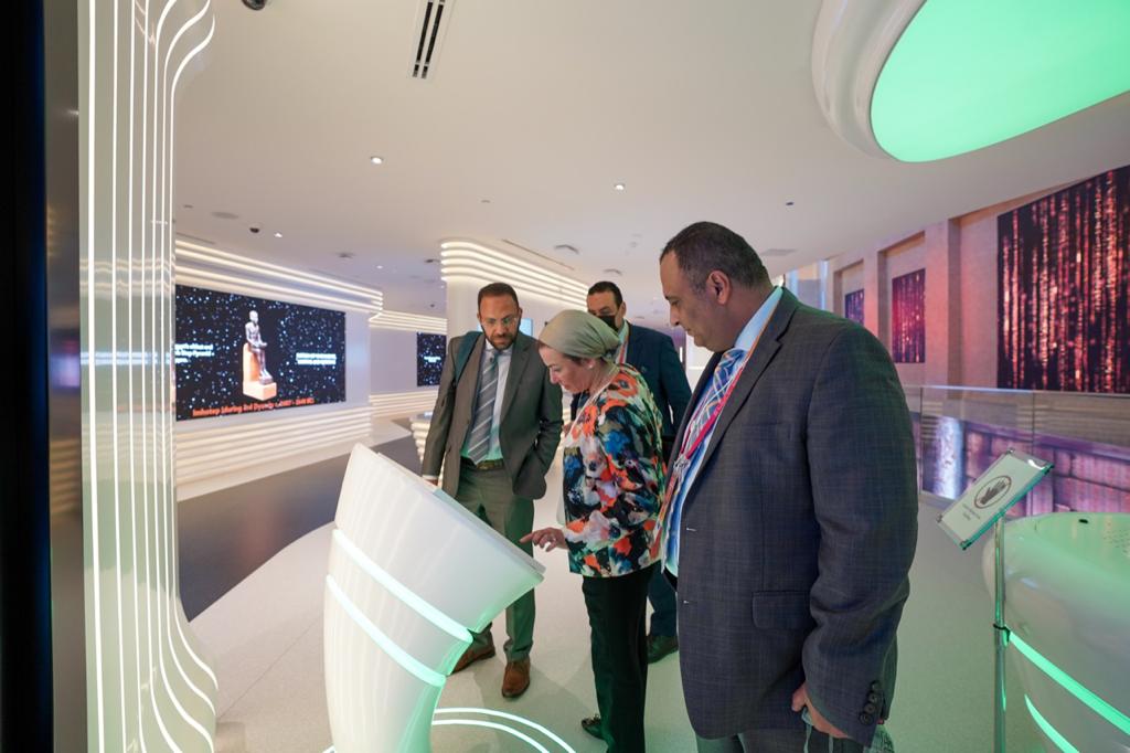وتفقدت الدكتورة ياسمين فؤاد خلال الزيارة كافة المعروضات والشاشات التفاعلية، والمستنسخات الفرعونية، وغرفة آلة الزمن، والمشروعات القومية الكبرى مثل المدن الذكية الجديدة ومن بينها العاصمة الادارية الجديدة والجلالة والعلمين، ومشروع المنطقة الاقتصادية لقناة السويس، والمشروعات الصناعية والزراعية إلى جانب مشروعات النقل والطاقة.