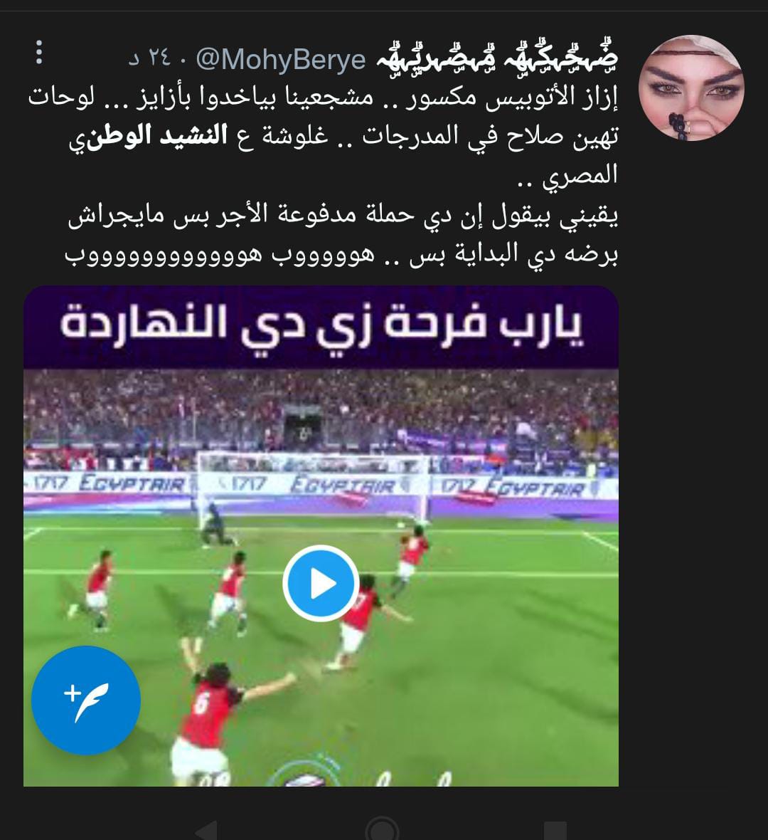 ونشر آخر: ازاز الأتوبيس مكسور ومشجعينا بياخدوا بأزايز، ولوحات تهين صلاح فى المدرجات، وغلوشة على النشيد الوطني المصري.