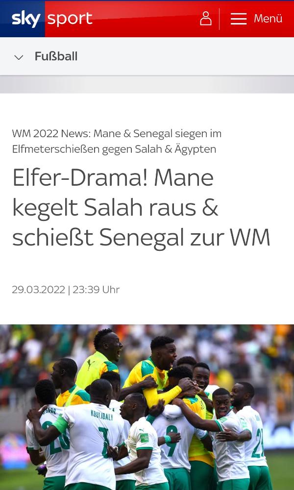 ةعنونت سكاي سبورتس في حديثها عن المباراة بـ ماني يقصي صلاح ويتأهل بالسنغال إلى كأس العالم قطر 2022.