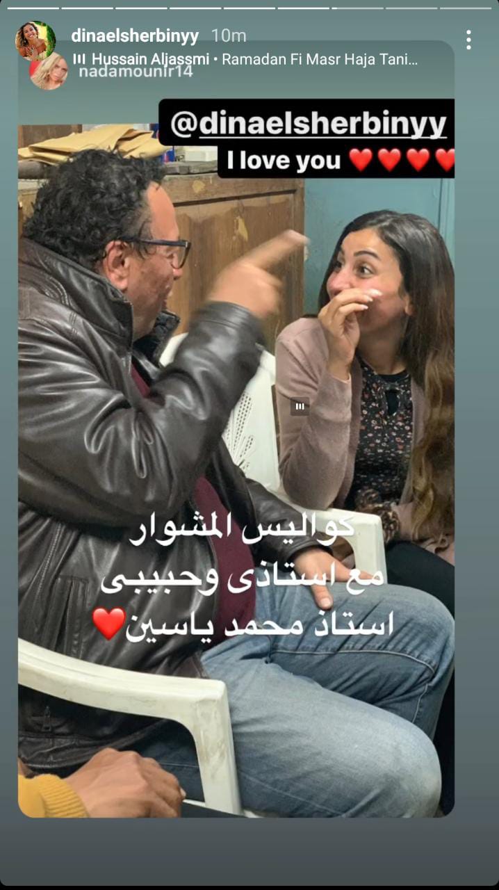 وكتبت دينا على الصورة التي نشرتها على حسابها الشخصي بـ انستجرام عبر خاصية استوري صورة لها مع المخرج محمد ياسين: كواليس المشوار مع أستاذي وحبيبي أستاذ محمد ياسين.