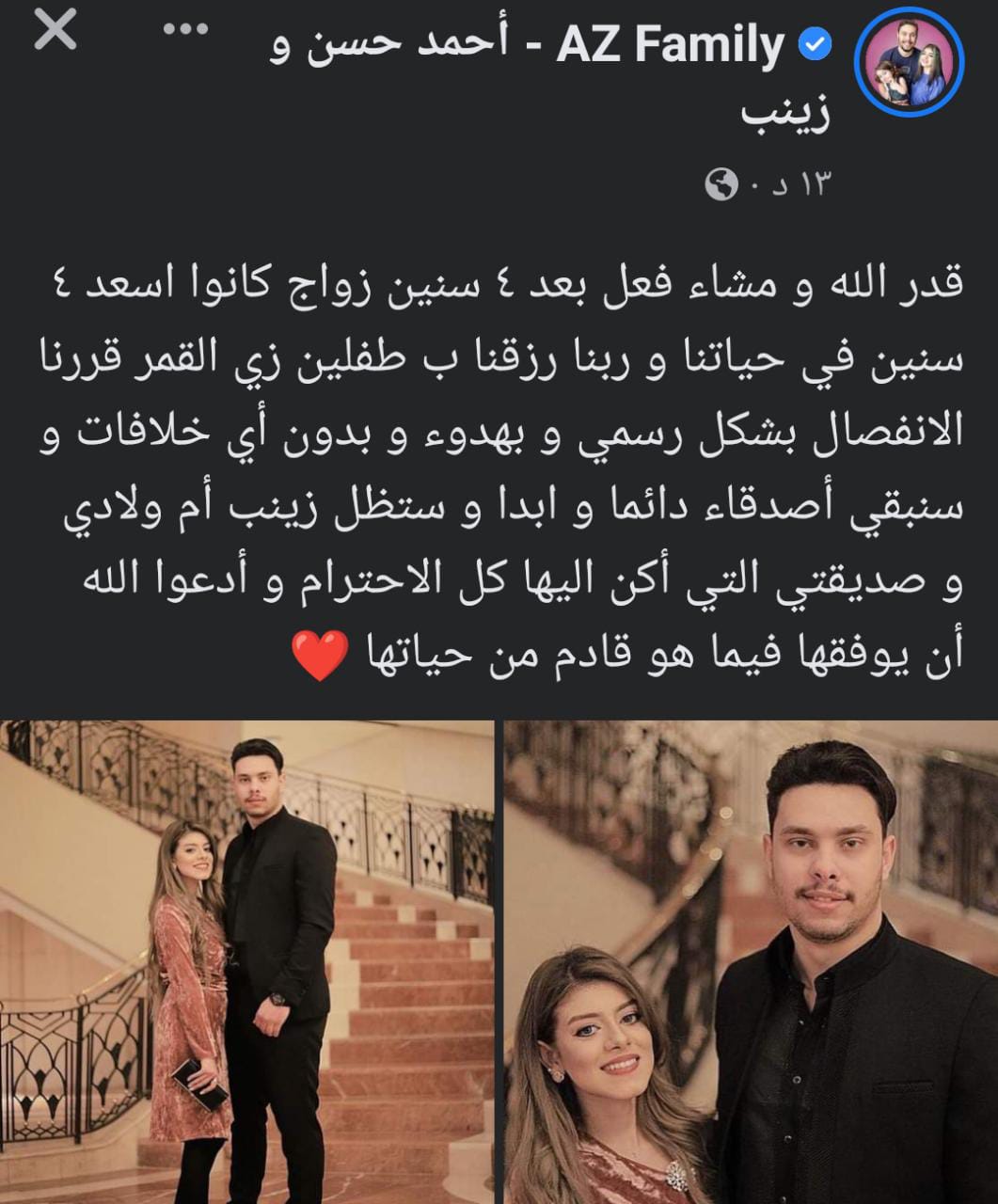انفصال أحمد حسن وزينب