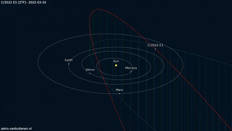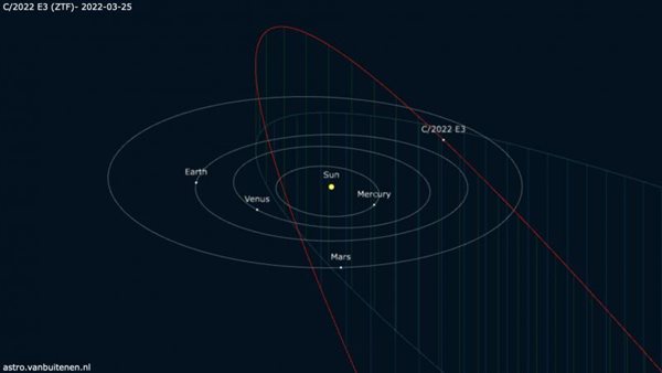وأضاف عبد الهادي، في تصريحات خاصة لـ القاهرة 24: تم اكتشاف المذنب C/ E3 ztf 2022 يوم 2 مارس 2022، وهو على بعد 4 وحدات فلكية، أي ما يعادل 4 مرات مثل المسافة بين الأرض والشمس.