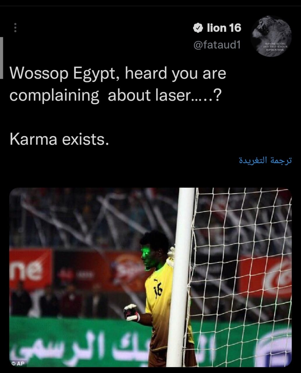 وكتب حارس مرمى منتخب غانا في تغريدة نشرها عبر حسابه الرسمي على تويتر: سمعت أنكم تشتكون من الليزر!.