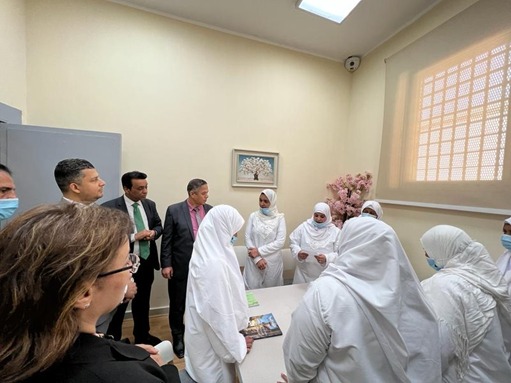 كما تفقدوا معرض المشغولات اليدوية والمشغل والخياطة والتطريز، بالإضافة إلى عدد من مرافق المركز من بينها، أماكن الشعائر الدينية – المكتبة – الفصول التعليمية – مبنى التأهيل والهوايات.