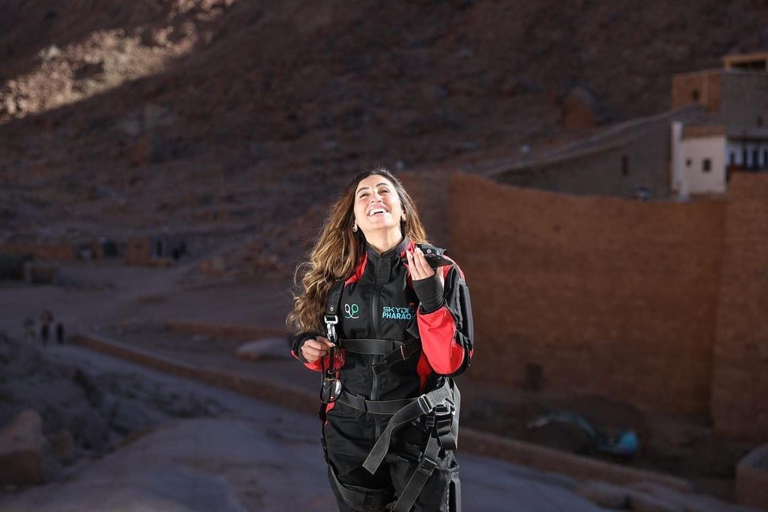 خاضت النجمة دينا الشربيني، تجربة السكاي دايفينج، في منطقة سانت كاترين، لتفتتح أولى حلقات برنامج نجوم السماء.