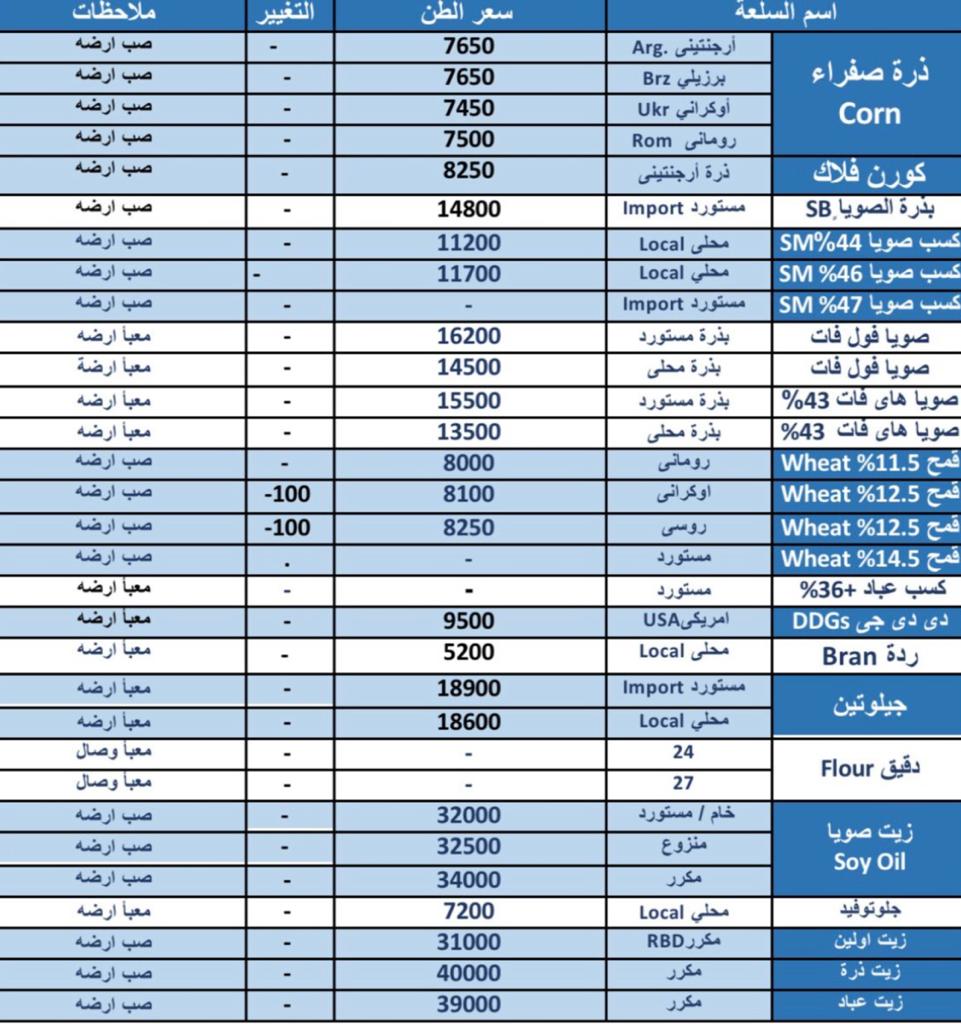 500 جنيه ارتفاعا في سعر خامات الأعلاف المحلية