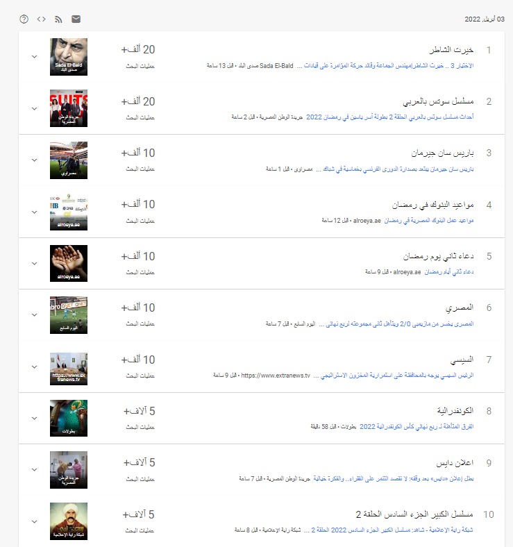 وتصدر اسم خيرت الشاطر تريند جوجل بعد ظهوره في مسلسل الاختيار، وحل في المركز العاشر من تريند جوجل مسلسل الكبير أوي، ولليوم الثاني لا يزال الفنان محمد رمضان خارج المنافسة بمسلسل المشوار.