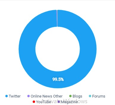 وكان النصيب الأكبر لتويتر لتصدر التريند عليه بنسبة 55.1%، يليه المواقع الإخبارية بنسبة 35.1%، ثم المدونات بنسبة 9%، والمنتديات بنسبة 0.4%، والمجلات بنسبة 0.4%، وفي النهاية يأتي اليوتيوب بنسبة 0% أي أنه لم يأتي على اليوتيوب مطلقًا، وفقًا لأداة Talkwalker.