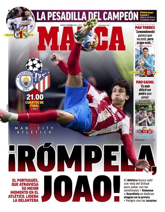 عنونت ماركا في غلافها بـ كابوس البطل، حيث أوضحت الصحيفة أن تشيلسي كابوس ريال مدريد في دوري أبطال أوروبا، حيث سقط الملكي أمام تشيلسي في المواجهات الرسمية الـ 5.