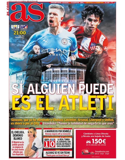 أوضحت آس في غلافها، أن تشيلسي بمثابة شبح ريال مدريد، حيث لم يتمكن ريال مدريد من الفوز عليه خلال الـ 5 مباريات الرسمية التي تواجه فيها الفريقين.