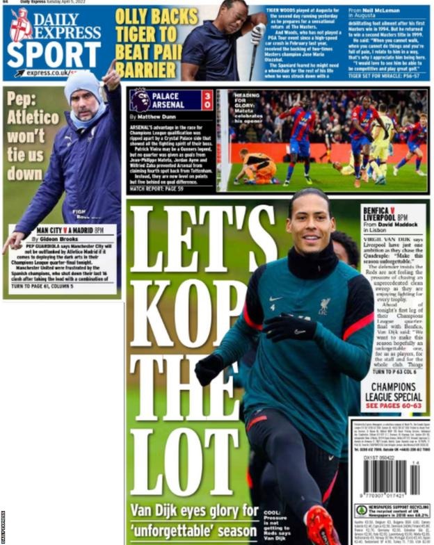 عنونت إكسبريس في غلافها بـ دعنا نحصل على الكثير، وذلك في اقتباس لرسائل فان دايك التحفيزية تجاه لاعبي ليفربول، بشأن مرحلة الفريق المقبلة، في الموسم والرغبة في حسم الألقاب المميزة.