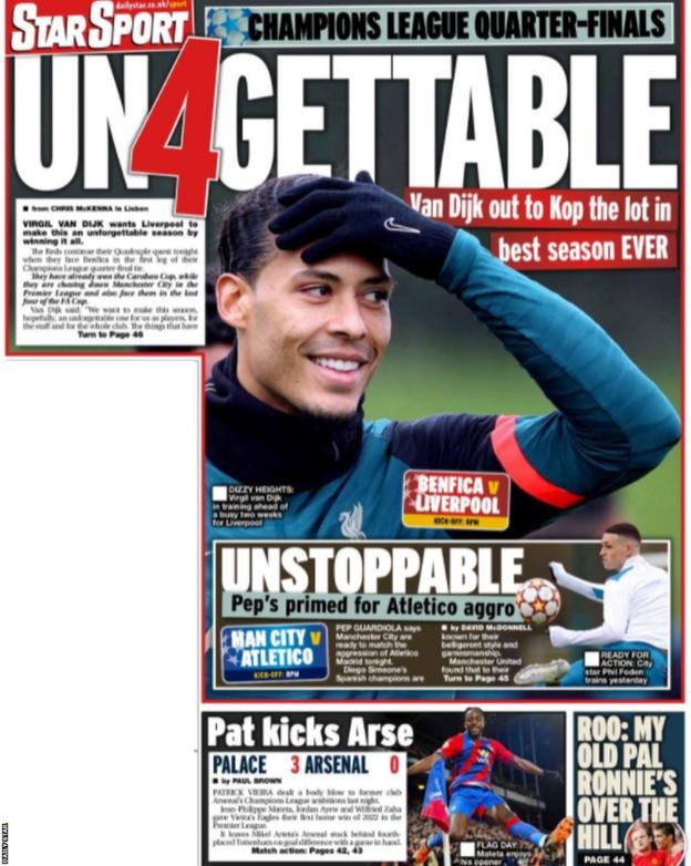 سلطت ستار سبورت الضوء في غلافها على تصريحات فيرجيل فان دايك، عن مرحلة ليفربول المقبلة، حيث عنونت بأن فان دايك أوضح رغبتهم في جعل موسم ليفربول غير قابل للنسيان في الفترة المتبقية، من الموسم بالمنافسة على البريميرليج ودوري أبطال أوروبا.