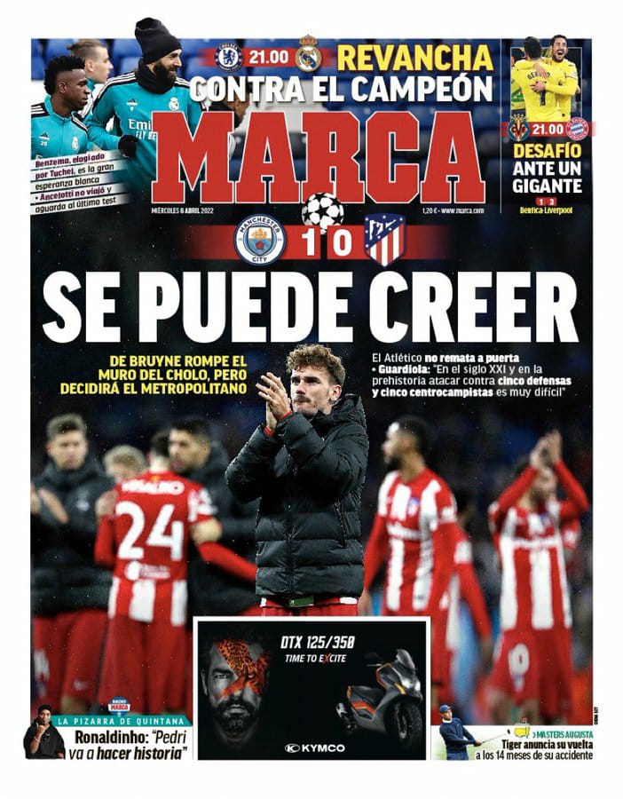 قالت ماركا في غلافها اليوم: رسالة تحفيزية لفريق ريال مدريد، وذلك بعنوان انطلق ضد البطل، بنزيما الذي أشاد به توخيل هو الأفضل وأمل البلانكو ضد تشيلسي.