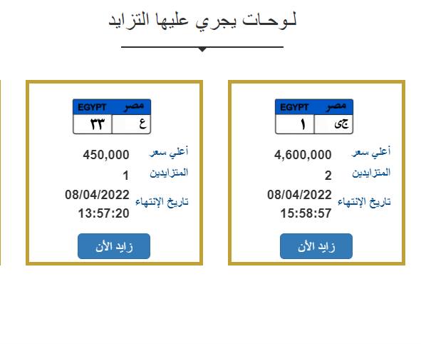 وفي وقت سابق كشف عدد من المواطنين عن مزايدات على لوحات معدنية مميزة للسيارات، بأسعار وصلت لـ4.6 مليون جنيه.