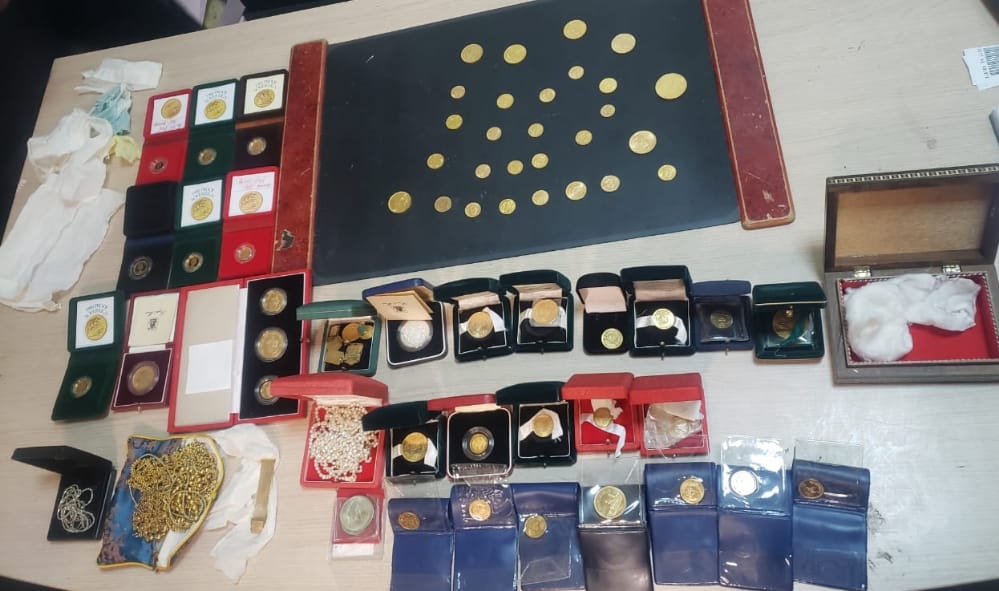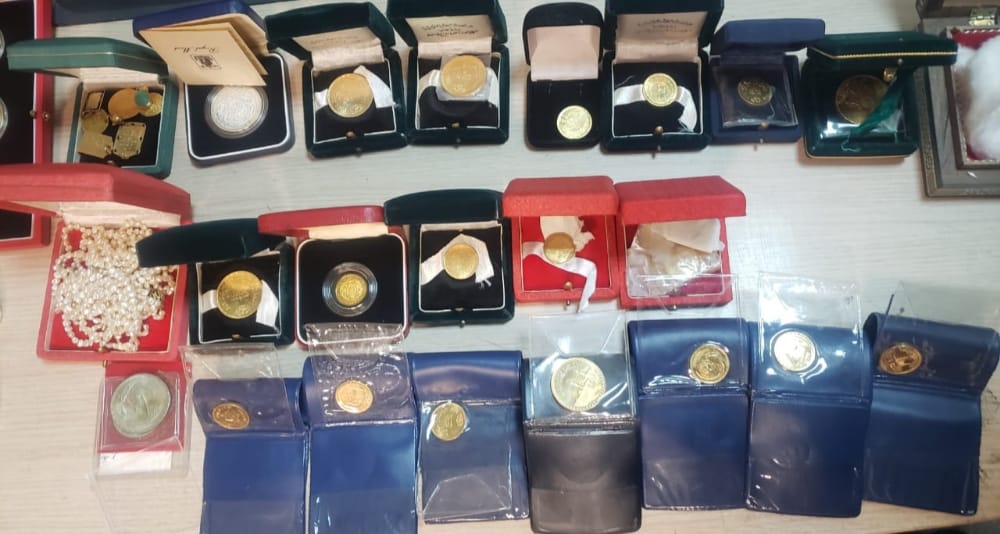وتم العرض علي الوحدة الأثرية بالمطار، فأفادوا بوجود 25 عملة معدنية ذهبية أثرية، ترجع لعصر الدولة البيزنطية والدولية الإسلامية والعصر العثماني، والعهد القاجارى وعصر الملك فؤاد الأول وعصر الرئيس جمال عبدالناصر.