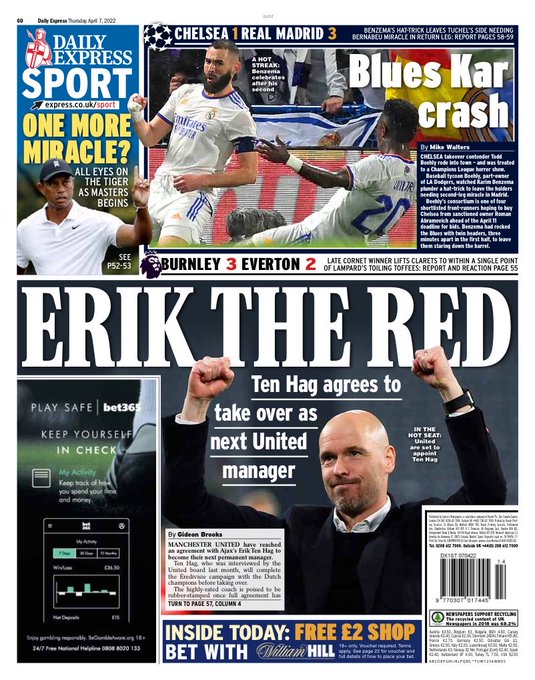 قالت ديلي إكسبريس في غلافها اليوم، إن ريال مدريد حطّم آمال البلوز، عقب هاتريك بنزيما أمس.