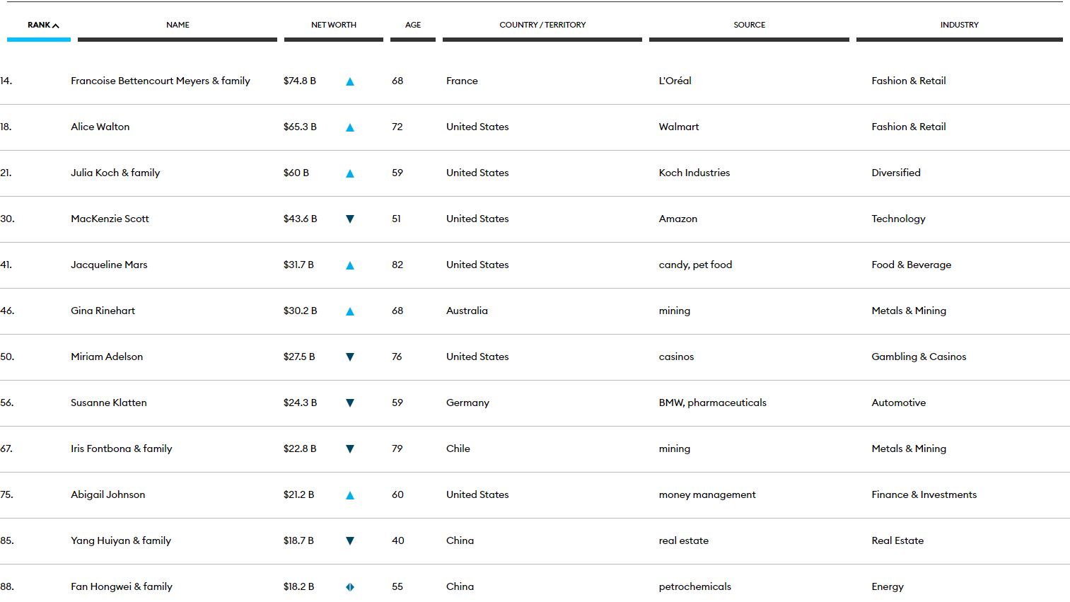 وفيما يلي أغنى سيدات في العالم لعام 2022