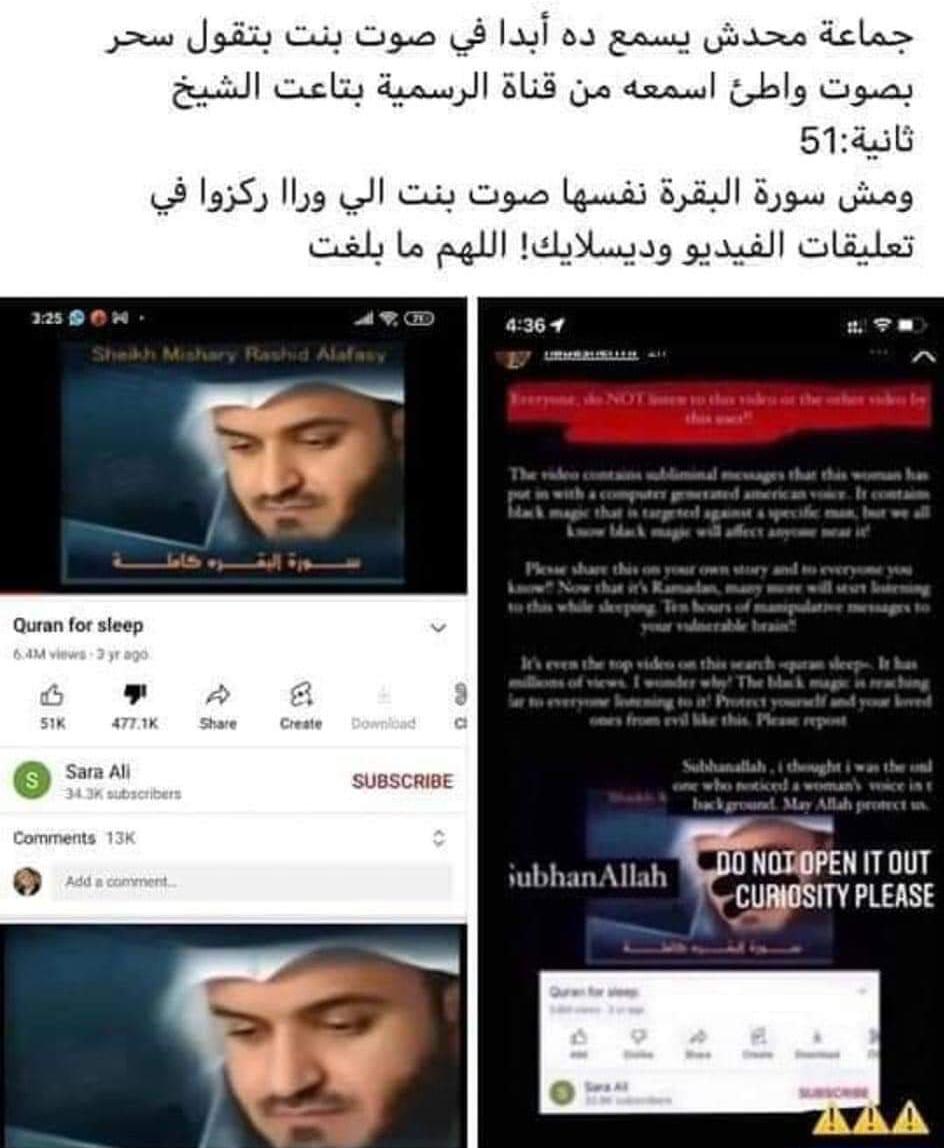 انتشر خلال الساعات القليلة الماضية فيديو قرآني لـ سورة البقرة، وفي خلفيته يظهر صوت فتاة تطلق سحرًا أسودًا لمستمعيه، وسرعان ما أثارت تلك الفيديوهات فزعًا كبيرًا بين متابعي مواقع التواصل الاجتماعي.